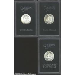 1883-CC S$1 MS64 Prooflike Uncertified, glowing fields form a splendid backdrop to the well struck and well frosted devices, there is some pale, mottled, golden color on the obverse; 1884-CC MS64 Uncertified, both sides are untoned, or essentially so, with a razor sharp strike; and another 1884-CC MS64 Uncertified, the otherwise frosty-white features reveal a blush of golden-orange iridescence at the lower left obverse border. All three coins include the original box of issue, and the certificate of the first coin is numbered 83696719. 3 coins Important notice: We expect to be auctioning lots at the rate of 200-250 per hour. Sometimes eBay Premier live bid software cannot keep up with that pace, so we strongly recommend that you place a realistic proxy bid now as insurance to avoid disappointment. Also please note that all Heritage/CAA lots purchased through eBay Premier carry a 20% Buyer's Premium. Please make sure you read the Terms and Conditions.