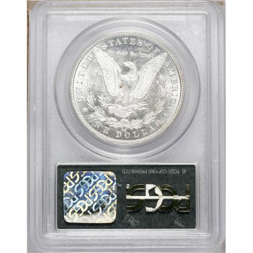<B>1883-CC<img border='0' src='http://www.heritagecoins.com/images/star.gif' width=10 height=10>$1> MS65 Deep Mirror Prooflike PCGS.</B></I> Among CC-mint Morgan dollars, the 1883 delivery is one of the most easily obtainable through the Gem level of preservation. The issue is not, however, common at the Gem grade level and with a Deep Mirror Prooflike finish. The present representative exhibits heavily frosted devices that are nicely contrasted against the flashy, dynamically reflective fields. A few small reddish-brown spots are noted on each side.
