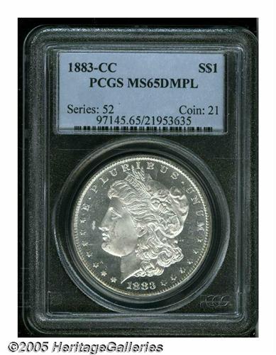<B>1883-CC<S$1> MS65 Deep Mirror Prooflike PCGS.</B></I> An impressive example with excellent cameo contrast. Both sides are fully brilliant white without a trace of toning. A wonderful Gem with outstanding eye appeal.