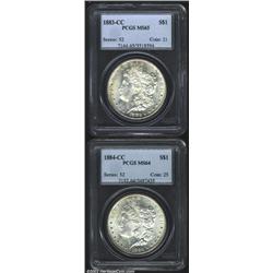 1883-CC S$1 MS65 PCGS, the obverse margin has apricot patina, flashy and exquisitely preserved with a typical strike; and an 1884-CC MS64 PCGS, well struck and lustrous with pleasing surfaces. 2 coins Important notice: We expect to be auctioning lots at the rate of 200-250 per hour. Sometimes eBay Premier live bid software cannot keep up with that pace, so we strongly recommend that you place a realistic proxy bid now as insurance to avoid disappointment. Also please note that all Heritage/CAA lots purchased through eBay Premier carry a 20% Buyer's Premium. Please make sure you read the Terms and Conditions.