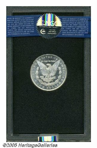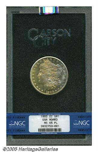 <B>1883-CC<S$1> MS65 Prooflike NGC.</B></I> Beautifully toned in gold, orange, and ocean-blue colors, the obverse is in vivid contrast to the fully brilliant reverse. A crisply struck and splendidly undisturbed Gem. The reverse is nicely mirrored.