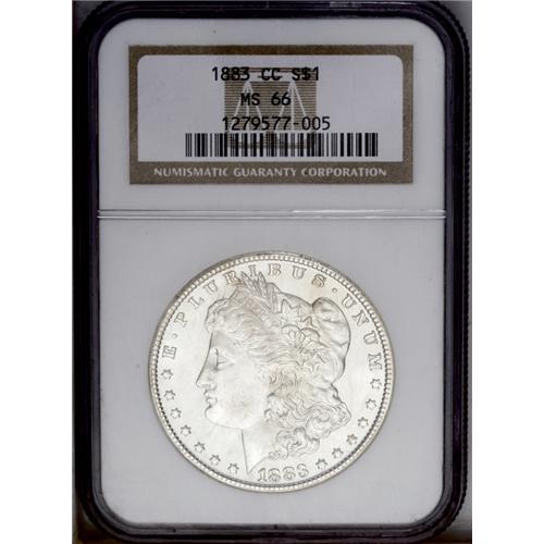 <B>1883-CC<img border='0' src='http://www.heritagecoins.com/images/star.gif' width=10 height=10>$1> MS66 NGC.</B></I> Nearly imperceptible dashes of faint gold-tan color visit lustrous surfaces that exhibit sharply struck design features. Some minute marks on the cheek are mentioned for accuracy. <BR><BR><B>Important notice:</B> Heritage usually auctions material at the rate of 200-250 lots per hour. On some occasions eBay Live bid software or the Internet may not be able to keep up with the pace of the auction. We recommend placing a realistic absentee bid now as insurance to avoid disappointment. Occasionally the auctioneer may eliminate or reject an eBay Live bid, and the auctioneer may also reopen a lot after the close of the eBay live bidding (usually because we missed an audience bid), and may reject your bid even if it shows you as the winning bidder. By bidding via eBay Live, you agree that Heritage may award the lot to another bidder at its sole discretion under the circumstances described above or any other reasonable circumstances. Since eBay bids are not shown to us until we open the lot on the floor, we treat those bids just like floor bids. In most cases the floor responds before the eBay bid is presented to us, due to Internet lag time, so for consistency we have made it a policy that floor bids are always considered first over tie eBay live bids. Also please note that all Heritage lots purchased through eBay Live carry a 20% Buyer's Premium. Please make sure you read the Terms and Conditions before you bid. This lot is being auctioned in conjunction with a live floor auction by Heritage Galleries & Auctioneers. All final auction and invoice information will be supplied by Heritage Galleries & Auctioneers, and all other information should be considered preliminary. Lot:3366 <BR><BR><B>Winning Notification and Billing:</B> After the FINAL session in this auction is complete, Heritage will send e-mail and snail mail invoices. This process normally takes several days. All final auction and invoice information will be supplied by Heritage Galleries & Auctioneers, and all other information should be considered preliminary. <BR><BR>This auction will be conducted on a live auction floor and over the Internet through eBay Live. If you choose to place an absentee bid, please take a moment to <font color='#0000ff'><u><a href='http://pages.ebay.com/liveauctions/help/before/laabsentee.html'>learn how eBay Live absentee bidding works</a></u></font><font color='#000000'>