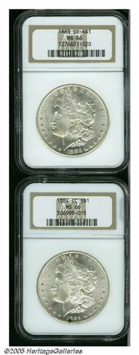 1883-CC S$1 MS66 NGC; and an 1884-CC MS66 NGC, 18