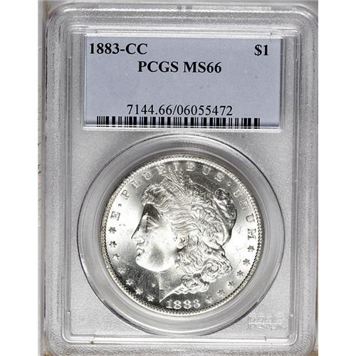 <B>1883-CC<img border='0' src='http://www.heritagecoins.com/images/star.gif' width=10 height=10>$1> MS66 PCGS.</B></I> A brilliant and boldly impressed example with lovely luster. A few tiny luster grazes keep this Premium Gem from reaching an even higher grade.