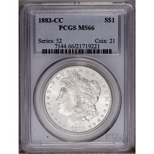 <B>1883-CC<img border='0' src='http://www.heritagecoins.com/images/star.gif' width=10 height=10>$1> MS66 PCGS.</B></I> This boldly struck and highly lustrous Premium Gem is brilliant save for a slender diagonal dove-gray streak above Liberty's mouth. Quality Carson City dollars are always in demand. <BR><BR><B>Important notice:</B> Heritage usually auctions material at the rate of 200-250 lots per hour. On some occasions eBay Live bid software or the Internet may not be able to keep up with the pace of the auction. We recommend placing a realistic absentee bid now as insurance to avoid disappointment. Occasionally the auctioneer may eliminate or reject an eBay Live bid, and the auctioneer may also reopen a lot after the close of the eBay live bidding (usually because we missed an audience bid), and may reject your bid even if it shows you as the winning bidder. By bidding via eBay Live, you agree that Heritage may award the lot to another bidder at its sole discretion under the circumstances described above or any other reasonable circumstances. Since eBay bids are not shown to us until we open the lot on the floor, we treat those bids just like floor bids. In most cases the floor responds before the eBay bid is presented to us, due to Internet lag time, so for consistency we have made it a policy that floor bids are always considered first over tie eBay live bids. Also please note that all Heritage lots purchased through eBay Live carry a 20% Buyer's Premium. Please make sure you read the Terms and Conditions before you bid. This lot is being auctioned in conjunction with a live floor auction by Heritage Galleries & Auctioneers. All final auction and invoice information will be supplied by Heritage Galleries & Auctioneers, and all other information should be considered preliminary. Lot:3364 <BR><BR><B>Winning Notification and Billing:</B> After the FINAL session in this auction is complete, Heritage will send e-mail and snail mail invoices. This process normally takes several days. All final auction and invoice information will be supplied by Heritage Galleries & Auctioneers, and all other information should be considered preliminary. <BR><BR>This auction will be conducted on a live auction floor and over the Internet through eBay Live. If you choose to place an absentee bid, please take a moment to <font color='#0000ff'><u><a href='http://pages.ebay.com/liveauctions/help/before/laabsentee.html'>learn how eBay Live absentee bidding works</a></u></font><font color='#000000'>
