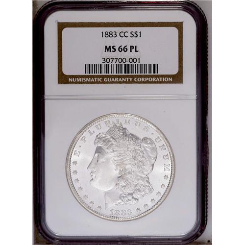 <B>1883-CC<img border='0' src='http://www.heritagecoins.com/images/star.gif' width=10 height=10>$1> MS66 Prooflike NGC.</B></I> Intense reflectivity is noted in the watery fields, and the crisply struck motifs are richly frosted. The smooth cheek is near-pristine, and small field marks are found only on the reverse. This brilliant Premium Gem has immense eye appeal. Census: 56 in 66 Prooflike, 1 finer (3/06). <BR><BR><B>Important notice:</B> Heritage usually auctions material at the rate of 200-250 lots per hour. On some occasions eBay Live bid software or the Internet may not be able to keep up with the pace of the auction. We recommend placing a realistic absentee bid now as insurance to avoid disappointment. Occasionally the auctioneer may eliminate or reject an eBay Live bid, and the auctioneer may also reopen a lot after the close of the eBay live bidding (usually because we missed an audience bid), and may reject your bid even if it shows you as the winning bidder. By bidding via eBay Live, you agree that Heritage may award the lot to another bidder at its sole discretion under the circumstances described above or any other reasonable circumstances. Since eBay bids are not shown to us until we open the lot on the floor, we treat those bids just like floor bids. In most cases the floor responds before the eBay bid is presented to us, due to Internet lag time, so for consistency we have made it a policy that floor bids are always considered first over tie eBay live bids. Also please note that all Heritage lots purchased through eBay Live carry a 20% Buyer's Premium. Please make sure you read the Terms and Conditions before you bid. This lot is being auctioned in conjunction with a live floor auction by Heritage Galleries & Auctioneers. All final auction and invoice information will be supplied by Heritage Galleries & Auctioneers, and all other information should be considered preliminary. Lot:3374 <BR><BR><B>Winning Notification and Billing:</B> After the FINAL session in this auction is complete, Heritage will send e-mail and snail mail invoices. This process normally takes several days. All final auction and invoice information will be supplied by Heritage Galleries & Auctioneers, and all other information should be considered preliminary. <BR><BR>This auction will be conducted on a live auction floor and over the Internet through eBay Live. If you choose to place an absentee bid, please take a moment to <font color='#0000ff'><u><a href='http://pages.ebay.com/liveauctions/help/before/laabsentee.html'>learn how eBay Live absentee bidding works</a></u></font><font color='#000000'>