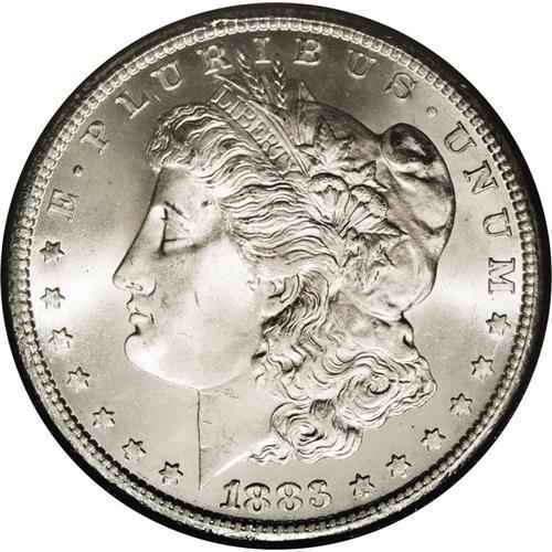 <B>1883-CC<img border='0' src='http://www.heritagecoins.com/images/star.gif' width=10 height=10>$1> MS67 NGC.</B></I> A gorgeously preserved Superb Gem that boasts booming luster and superior eye appeal. Hints of almond-gold cross both sides, although many observers would call this piece brilliant. The strike is pleasing, despite a trace of softness on the hair above the ear. Most such high quality 1883-CC dollars were broken out of their GSA holders shortly after the advent of third party grading services.