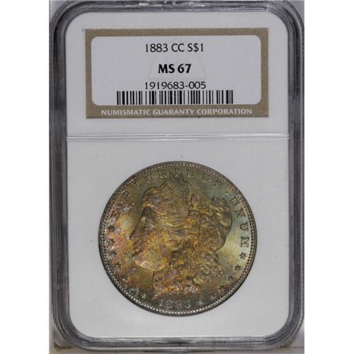 1883-CC S$1 MS67 NGC. While a "common" CC dollar, this
