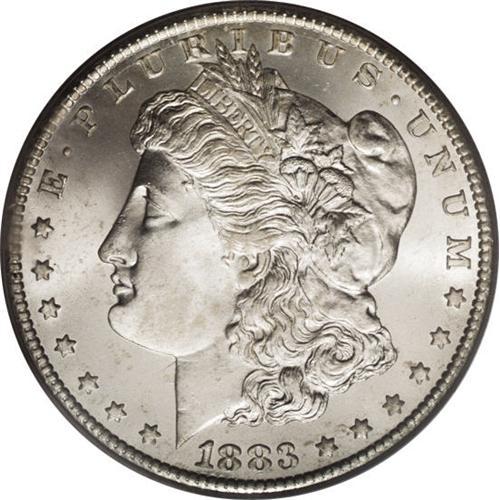 <B>1883-CC S$1 MS67 PCGS.</B></I> Brilliant, lustrous, and untoned, this exemplary CC-mint Morgan dollar shows bold clash marks on each side, along with a small patch of raised die lines under the eagle's left (facing) wing. Liberty's cheek is exceptionally clean, and elsewhere there are few distractions of any kind. The strike is slightly soft on the hair over the ear, but otherwise well executed. Nearly the finest obtainable, as PCGS has certified only three coins finer (1/07).<BR><BR><b>Shipping:</b> Coins & Currency (<a target="_blank" href="http://www.heritageauctions.com/common/shipping.php">view shipping information</a>)