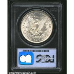 1883-CC S$1 MS67 PCGS. Silver Dollar production at the Carson City Mint amounted to 1.2 million coins in 1883. Virtually the entire mintage was retained in federal vaults through the late 20th century, with quantities entering the numismatic market from time to time. The most significant release came in 1972-1980, when 755,518 Mint State pieces, or 62% of the original mintage, was dispersed by the General Services Administration. Since most '83-CC Dollars are, however, extensively abraded, this issue remains a rarity at the Superb Gem level of preservation. This is an exquisite example with rich, coruscant mint frost and a smooth cheek on Liberty's portrait. The balance of the features are equally smooth, all of which are sharply struck. The otherwise untoned surfaces reveal a blush of golden color at the upper obverse border and a streak of similar color on the reverse through the eagle's left (facing) wing. Population: 66 in 67, with a mere four finer (7/02). Important notice: We expect to be auctioning lots at the rate of 200-250 per hour. Sometimes eBay Premier live bid software cannot keep up with that pace, so we strongly recommend that you place a realistic proxy bid now as insurance to avoid disappointment. Also please note that all Heritage/CAA lots purchased through eBay Premier carry a 20% Buyer's Premium. Please make sure you read the Terms and Conditions.
