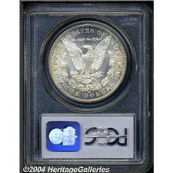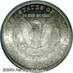 <B>1883-CC<S$1> MS67 PCGS.</B></I> A Superb example with thick mint frost and virtually abrasion-free surfaces. The peripheries are decorated by speckled multicolored toning. Boldly struck with some softness noted above Liberty's ear, and on the eagle's breast. A beautiful and obviously original example of this popular Carson City Dollar issue. Population: 77 in 67, 3 finer (3/04). <BR><BR><B>Important notice:</B> Heritage usually auctions material at the rate of 200-250 lots per hour. On some occasions eBay Live bid software or the Internet may not be able to keep up with the pace of the auction. We recommend placing a realistic absentee bid now as insurance to avoid disappointment. Occasionally the auctioneer may eliminate or reject an eBay Live bid, and the auctioneer may also reopen a lot after the close of the eBay live bidding (usually because we missed an audience bid), and may reject your bid even if it shows you as the winning bidder. By bidding via eBay Live, you agree that Heritage may award the lot to another bidder at its sole discretion under the circumstances described above or any other reasonable circumstances. Since eBay bids are not shown to us until we open the lot on the floor, we treat those bids just like floor bids. In most cases the floor responds before the eBay bid is presented to us, due to Internet lag time, so for consistency we have made it a policy that floor bids are always considered first over tie eBay live bids. Also please note that all Heritage lots purchased through eBay Live carry a 20% Buyer's Premium. Please make sure you read the Terms and Conditions before you bid. </span></font></tr></table></td></tr></table>