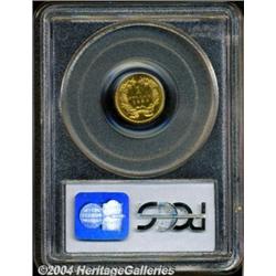 <B>1883<G$1> MS64 PCGS.</B></I> Well struck, with bright golden-orange surfaces. The fields give off a prooflike appearance, establishing a mild contrast with the main devices. A few wispy field marks on the obverse preclude a higher grade on this gorgeous Type Three Indian Head gold dollar. <BR><BR><B>Important notice:</B> Heritage usually auctions material at the rate of 200-250 lots per hour. On some occasions eBay Live bid software or the Internet may not be able to keep up with the pace of the auction. We recommend placing a realistic absentee bid now as insurance to avoid disappointment. Occasionally the auctioneer may eliminate or reject an eBay Live bid, and the auctioneer may also reopen a lot after the close of the eBay live bidding (usually because we missed an audience bid), and may reject your bid even if it shows you as the winning bidder. By bidding via eBay Live, you agree that Heritage may award the lot to another bidder at its sole discretion under the circumstances described above or any other reasonable circumstances. Since eBay bids are not shown to us until we open the lot on the floor, we treat those bids just like floor bids. In most cases the floor responds before the eBay bid is presented to us, due to Internet lag time, so for consistency we have made it a policy that floor bids are always considered first over tie eBay live bids. Also please note that all Heritage lots purchased through eBay Live carry a 20% Buyer's Premium. Please make sure you read the Terms and Conditions before you bid. </span></font></tr></table></td></tr></table>
