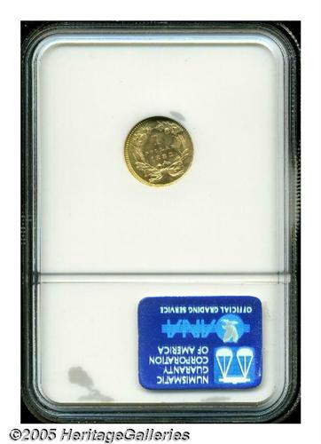 <B>1883<G$1> MS65 NGC.</B></I> Just 10,800 business strike gold dollars were produced in 1883. Most survivors are Mint State, as these coins were generally hoarded and did not actually circulate. This example has bright yellow-gold surfaces with radiant luster. The design features are well impressed throughout. A couple of tiny marks in the right (facing) obverse field are not at all bothersome.