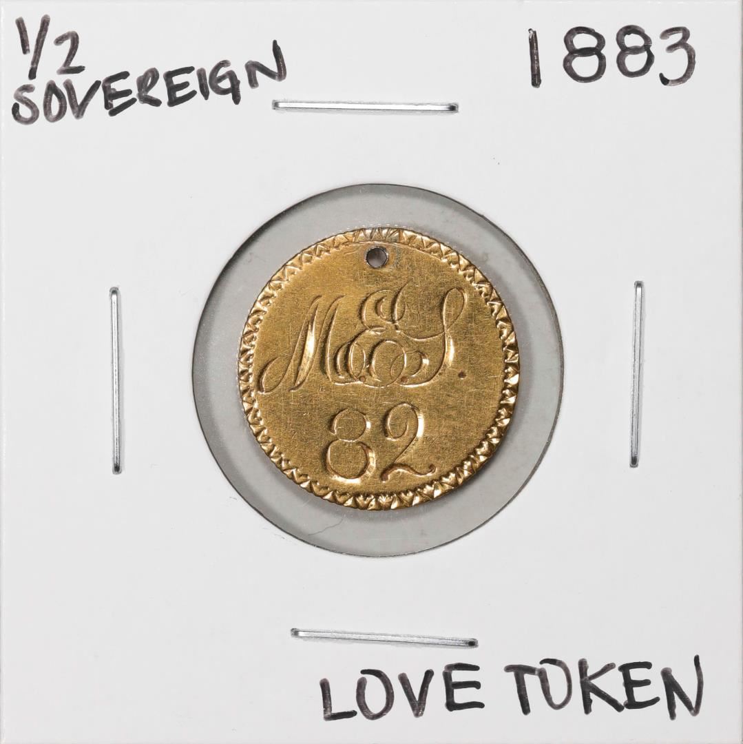 One 1883 Gold Half Sovereign Love Token Coin Holed.