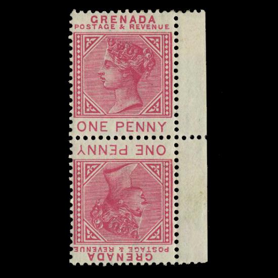 1883 Grenada 1p Postage Stamp Mint Tete-beche Pair RARE w/ Varieties (STM-0592)