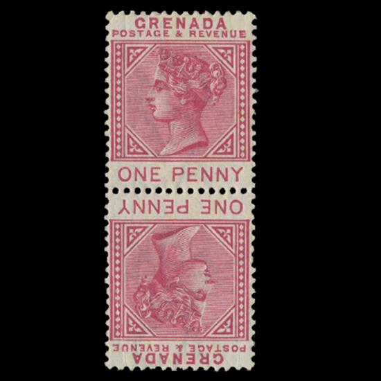 1883 Grenada 1p Postage Stamp Mint Tete-beche Pair RARE w/ Varieties (STM-0593)