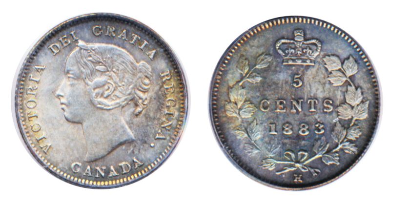 1883-H. PCGS graded Mint State-64. Even, medium heavy toning in shades of gray and blue. An attractive example of one of the ‘keys’ of the Victorian series.