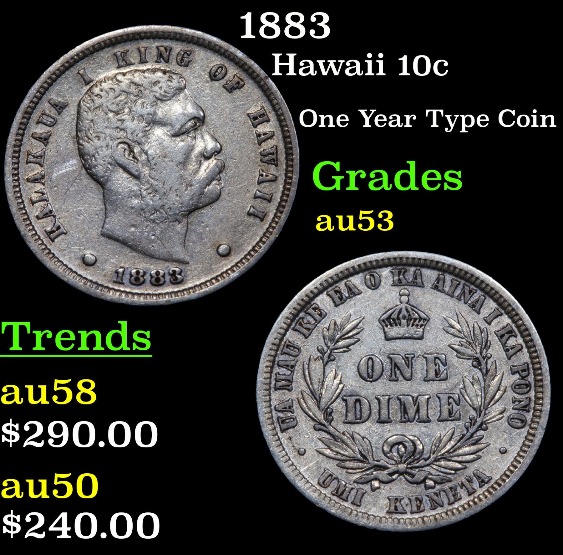 1883 Hawaii 10c Grades Select AU. he 1883 Hawaiian "umi keneta" was struck at the San Francisco Mint on U.S. dime planchets. Many were redeemed and melted after Hawaii acquired U.S. territorial status A Corey's Pick, Bid to Win Coin