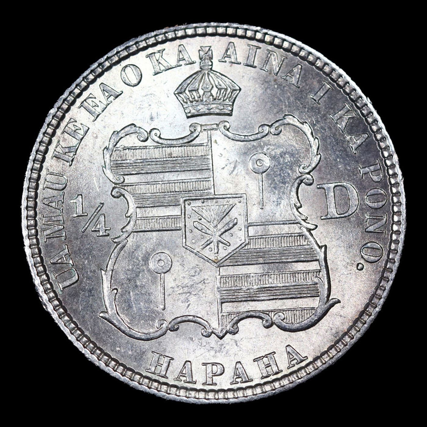 1883 Hawaii Quarter 25c Grades Choice Unc. The 1883 Hawaiian "Hapaha" was struck at the San Francisco Mint on U.S. Quarter planchets. Many were redeemed and melted after Hawaii acquired U.S. territorial statusPer Maurice Gould and Kenneth Bressett writing in Hawaiian Coins, Tokens, and Paper Money (1961): "In 1883, Claus Spreckels, a banker, sugar planter, and power behind the throne, approached the King on the subject of having a silver coinage struck for the Islands. Application was made by the Hawaiian Government for the coinage at the San Francisco mint, of one million dollars in silver denominations to correspond with the silver coins of the United States of America in fineness and weight, regulations of the 9th of November, 1883, by the Secretary of the United States Treasury." Ultimately, 500,000 Hawaiian quarters were struck in 1883. The 1883 Hawaiian "Hapaha" was struck at the San Francisco Mint on U.S. Quarter planchets. Many were redeemed and melted after Hawaii acquired U.S. territorial statusPer Maurice Gould and Kenneth Bressett writing in Hawaiian Coins, Tokens, and Paper Money (1961): "In 1883, Claus Spreckels, a banker, sugar planter, and power behind the throne, approached the King on the subject of having a silver coinage struck for the Islands. Application was made by the Hawaiian Government for the coinage at the San Francisco mint, of one million dollars in silver denominations to correspond with the silver coins of the United States of America in fineness and weight, regulations of the 9th of November, 1883, by the Secretary of the United States Treasury." Ultimately, 500,000 Hawaiian quarters were struck in 1883