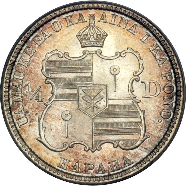 Before the reign of Kalakaua (1874-91) little had been done about a national coinage for the Kingdom of Hawaii. In 1847, the government issued a thousand dollars' worth of copper cents bearing the likeness of Kamehameha III. But that was all. The Kingdom's business was done using foreign coins of silver and gold, with (as the decades wore on) American money coming to dominate. (By 1884, the Hawaiian government went on a gold standard with the U.S. $20 gold piece being the standard against which all values were priced.