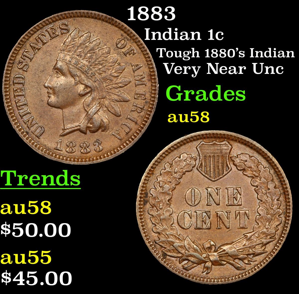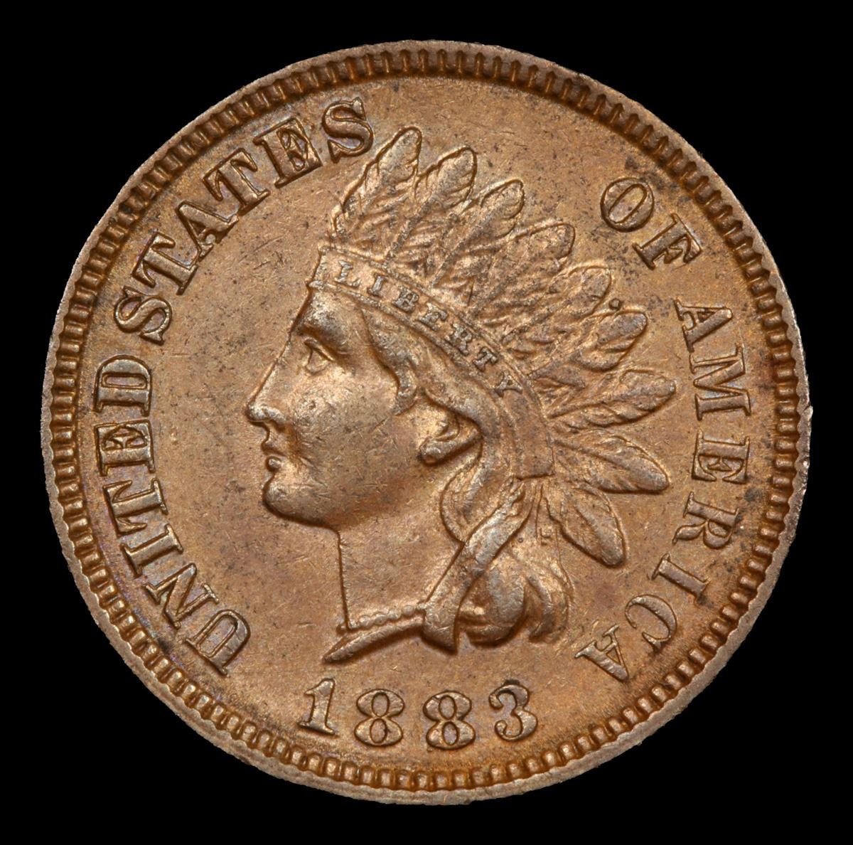 1883 Indian Cent 1c Grades Choice AU/BU Slider.
