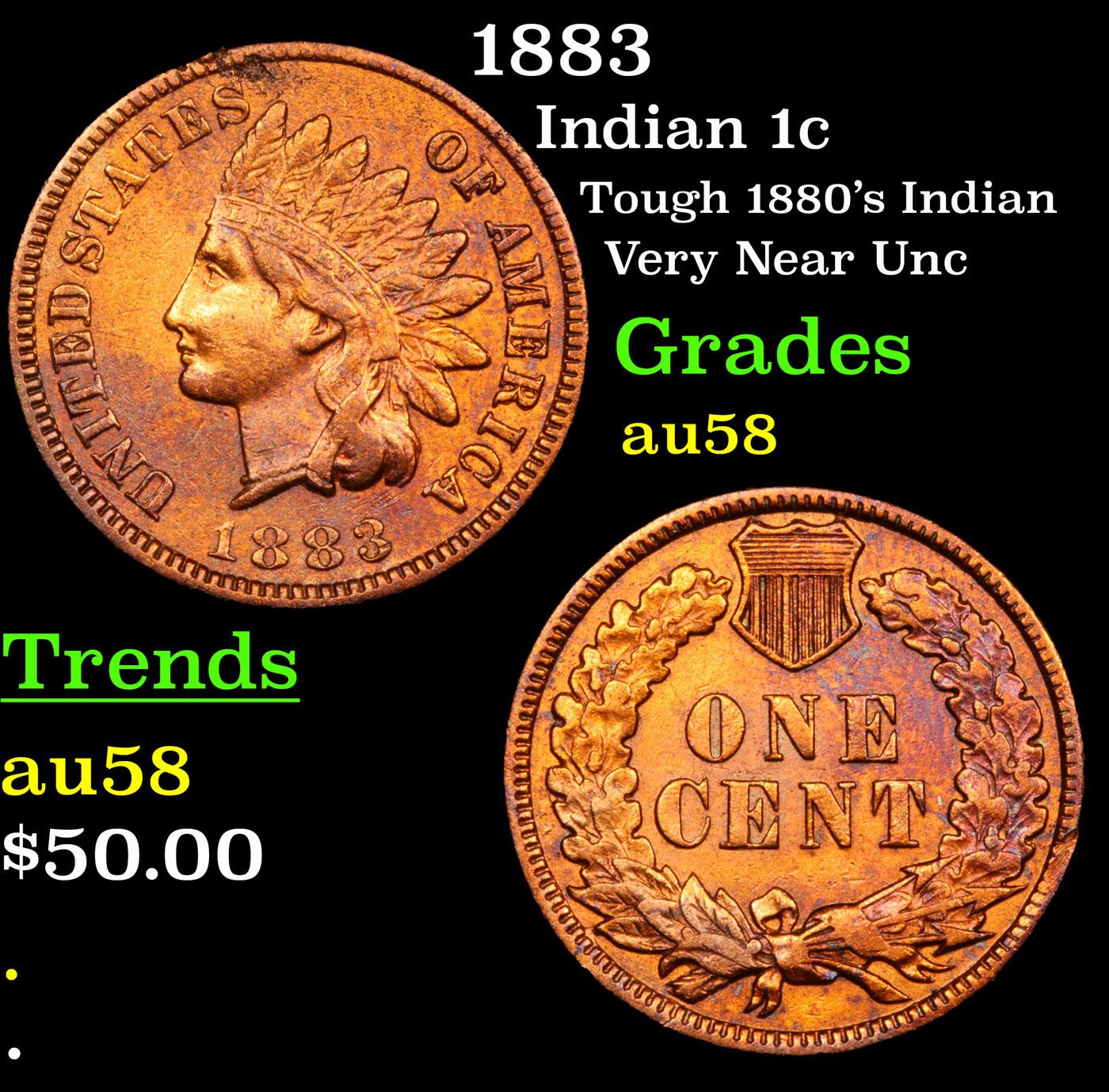 1883 Indian Cent 1c Grades Choice AU/BU Slider.