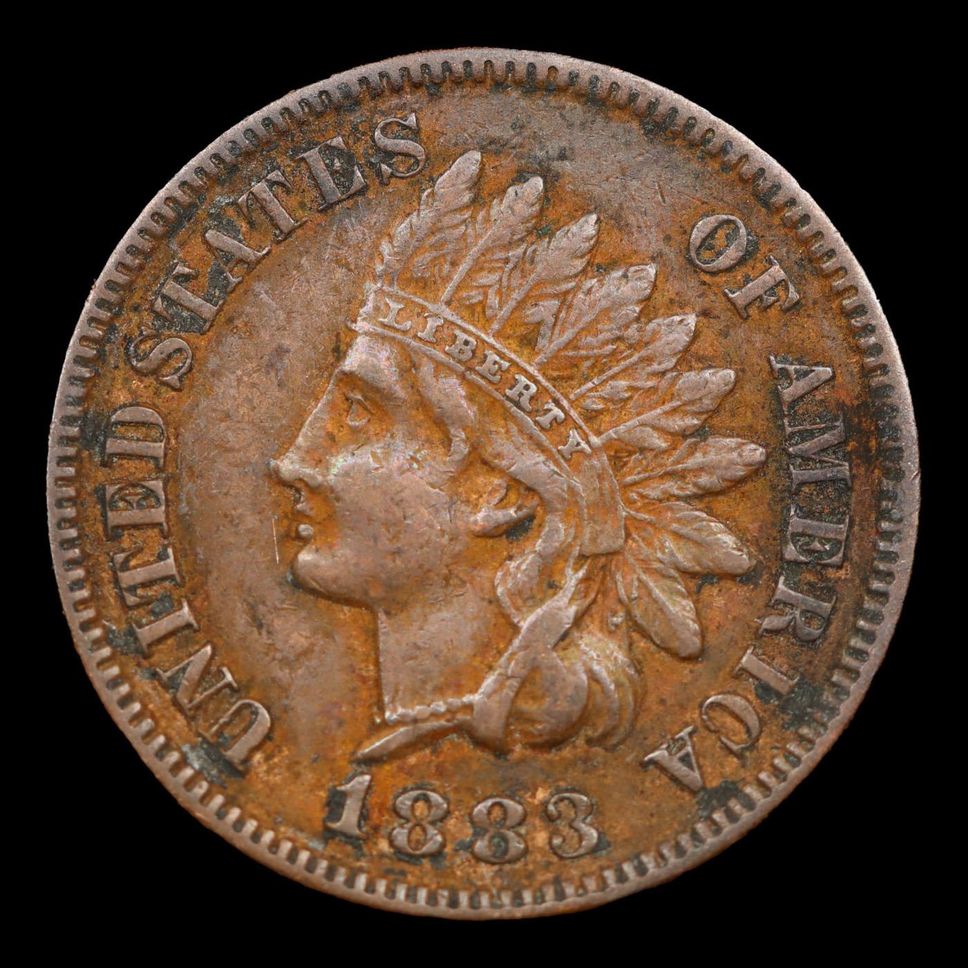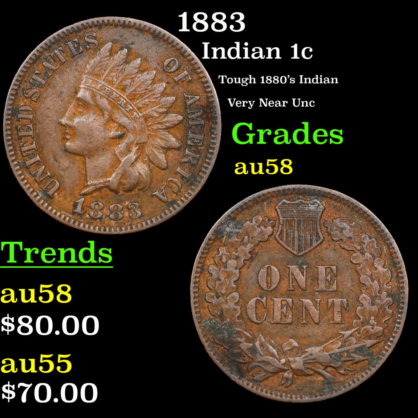 1883 Indian Cent 1c Grades Choice AU/BU Slider.