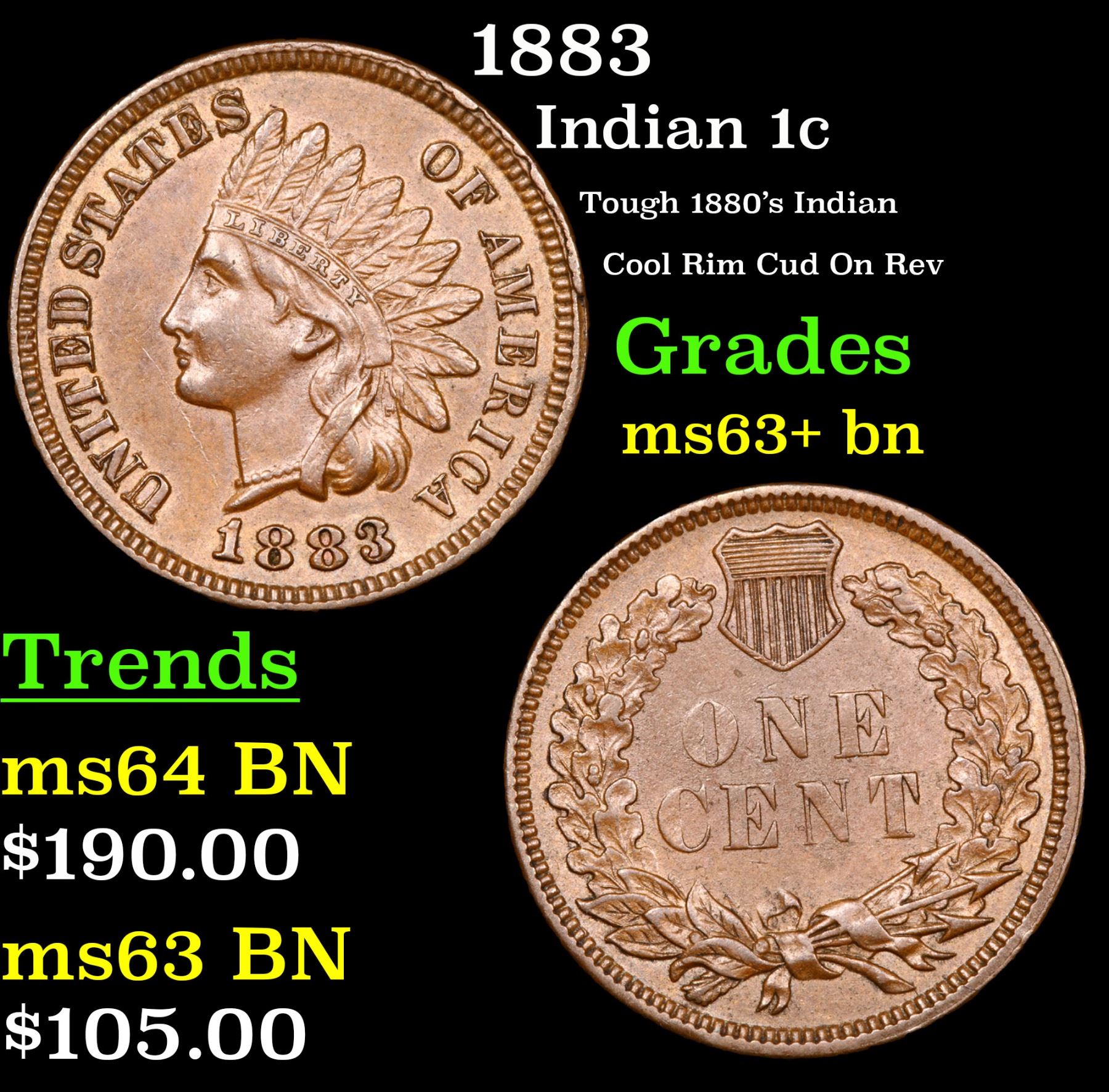 1883 Tough 1880's Indian Cool Rim Cud On Rev Indian Cent 1c Grades Select+ Unc BN.