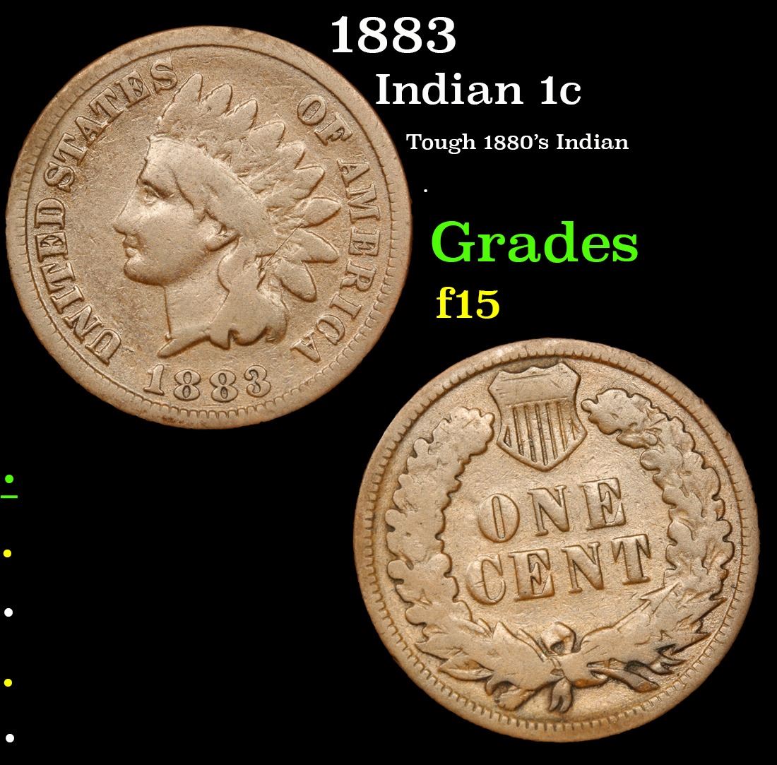 1883 Tough 1880's Indian . Indian Cent 1c Grades f+.