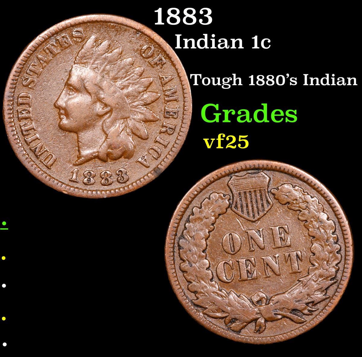 1883 Tough 1880's Indian . Indian Cent 1c Grades vf+.