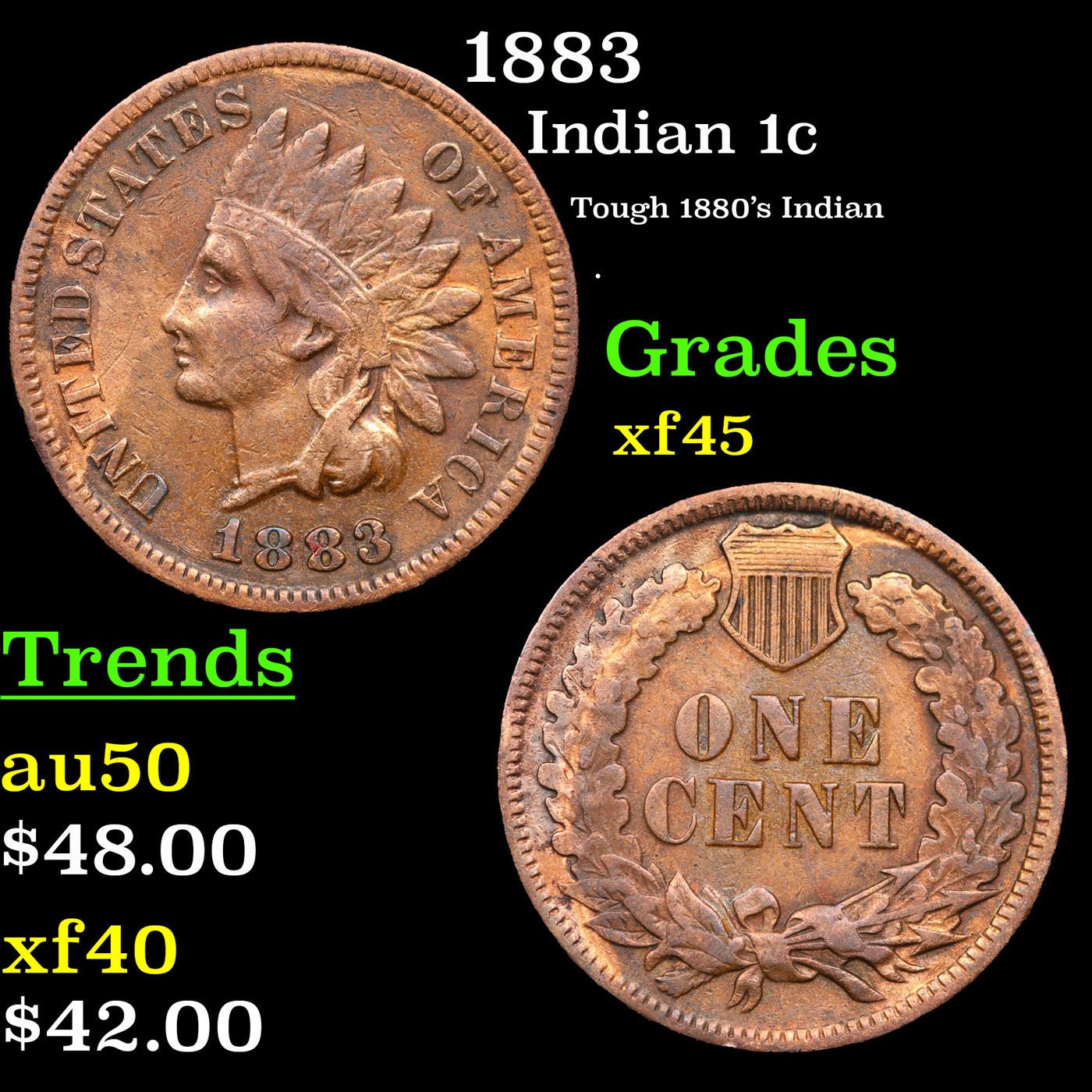 1883 Indian Cent 1c Grades xf+.