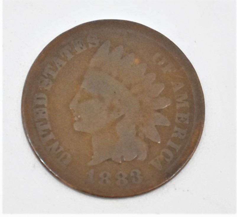 1883 Indian Head Cent, measures .75''D, Mintage: 45,591,500, Minted at: Philadelphia (No Mint Mark), Designer - Engraver: James B Longacre, Metal Composition: 95% Copper - 5% Tin and Zinc, Weight: 2.9 grams