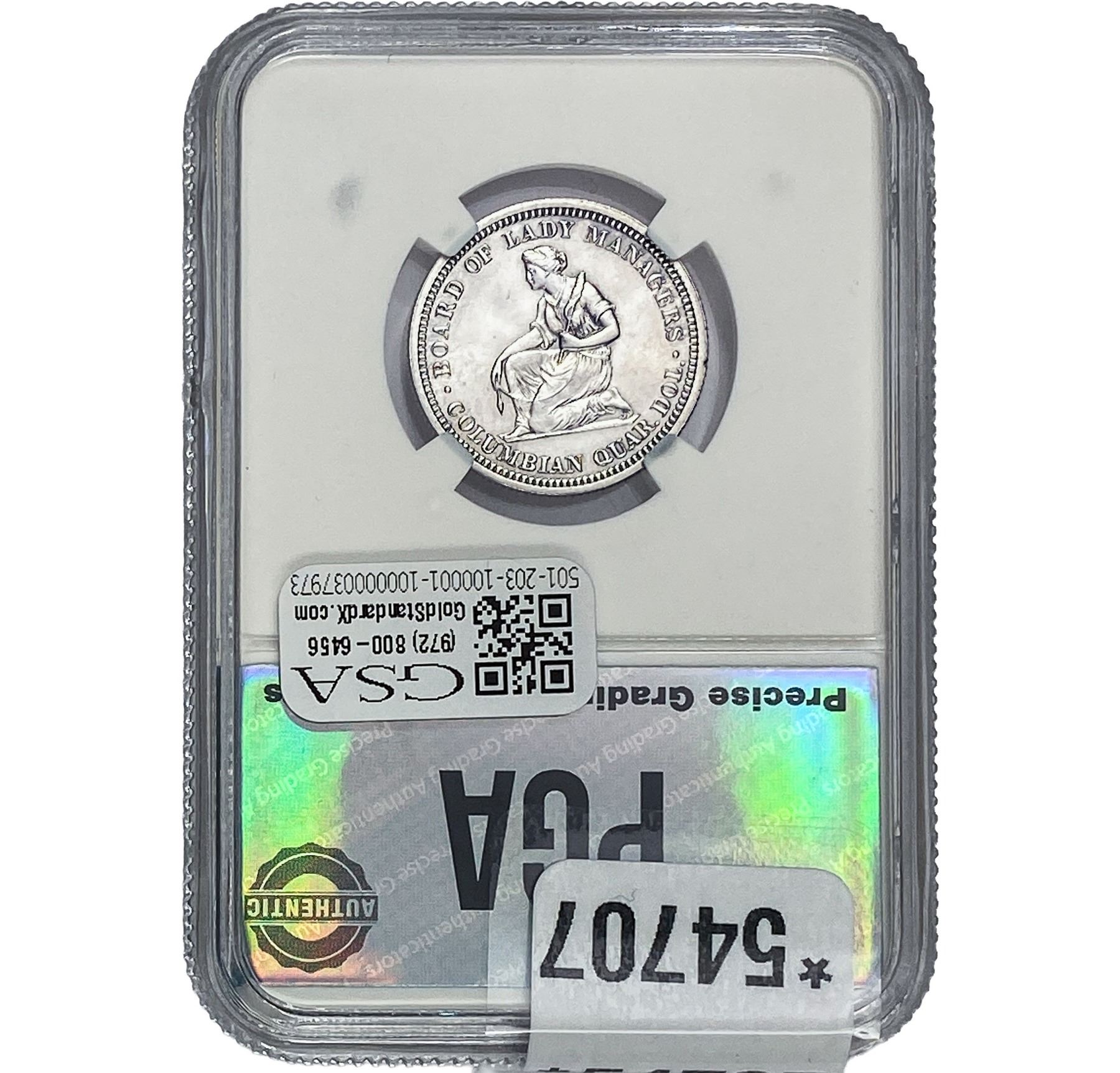 e. Coins sold referencing a third-party grading service are sold “AS IS” without any express or implied warranty, except for a guarantee by GSA that they are genuine. Removal or alteration of the holder, voids all of Bidder’s claims concerning that Product. Certain warranties may be available from the grading services and Bidders are referred to them for further details: Numismatic Guaranty Corporation (NGC), PO Box 4776, Sarasota, FL 34230, www.ngccoin.com/services/writtenguarantee.asp; Professional Coin Grading Services (PCGS), PO Box 9458, Newport Beach, CA 92658, www.pcgs.com/guarantee.html; ANACS, 6555 S. Kenton St., Ste. 303, Englewood, CO 80111; and Independent Coin Grading Co. (ICG), 7901 East Bellview, Ave., Suite 50, Englewood, CO 80111.