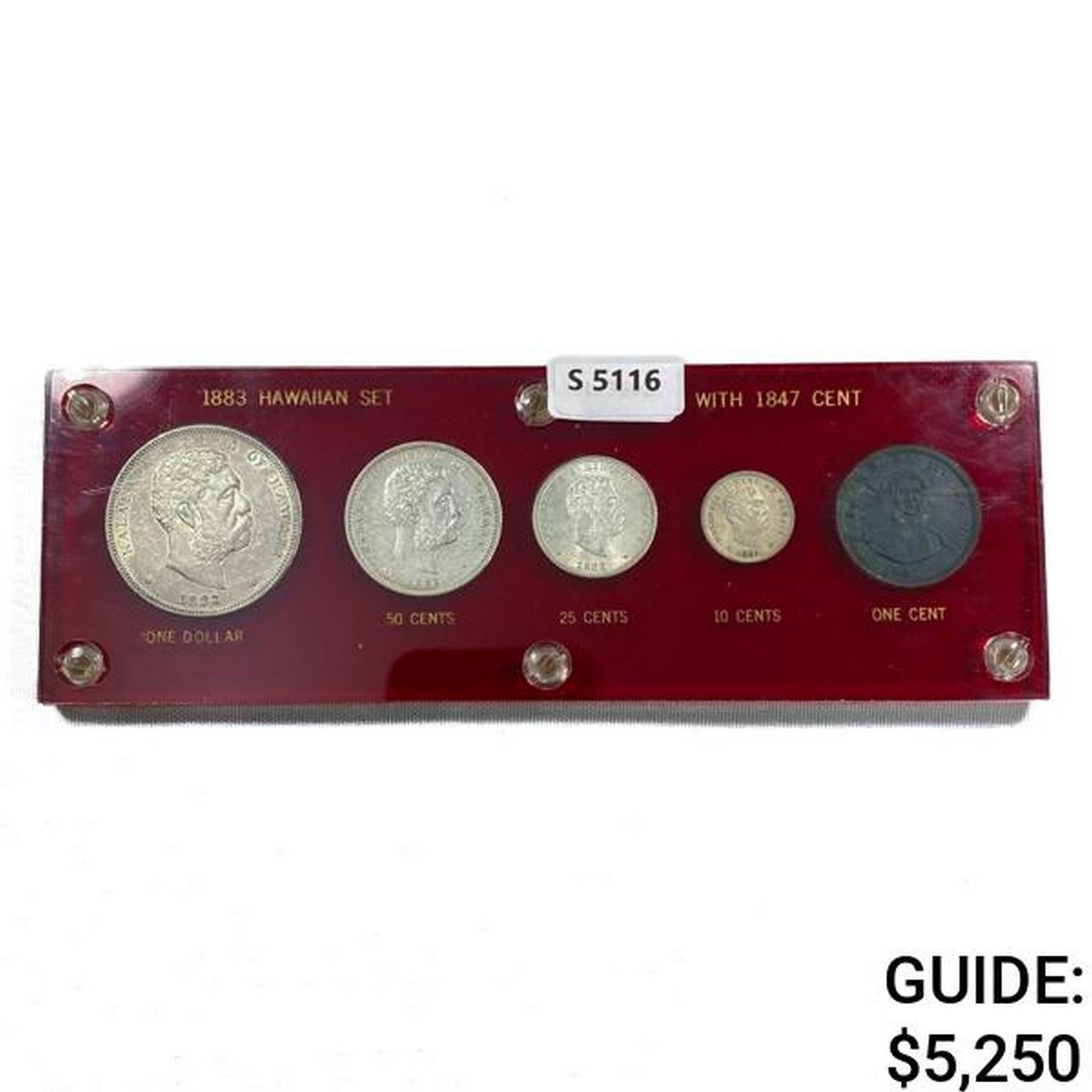 1883 KD of Hawaii w/ 1847 Cent Coin Set (5 Coins)