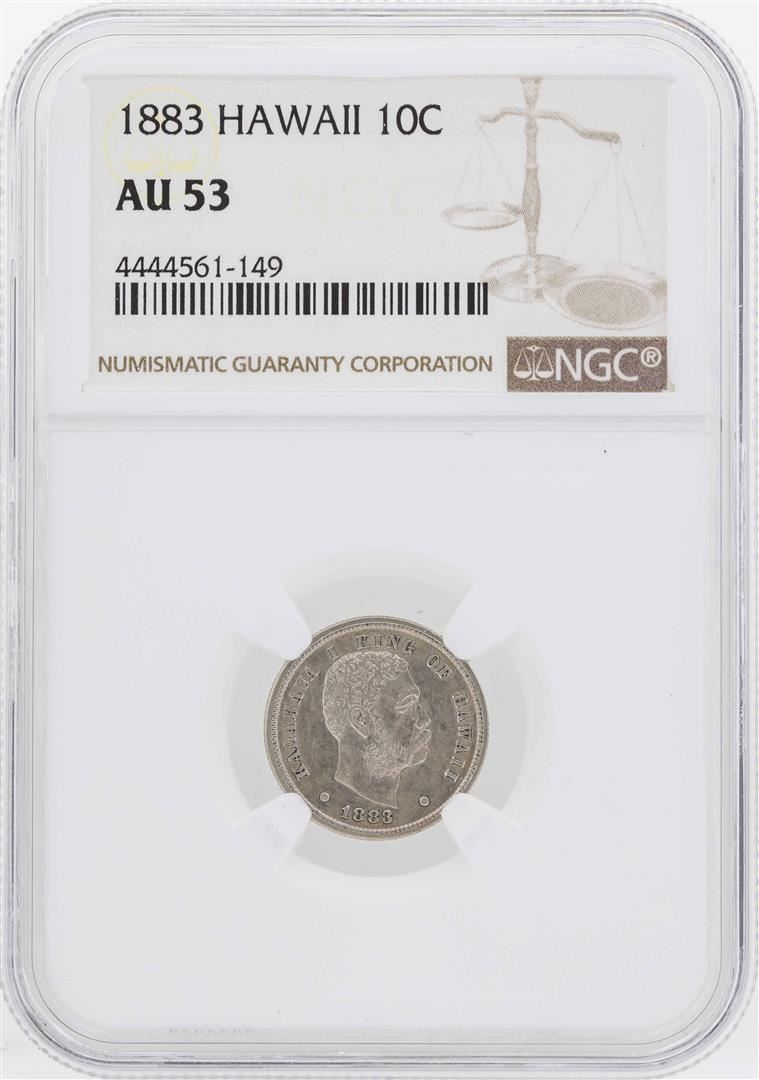 One 1883 Kingdom of Hawaii Dime Coin NGC AU53. NGC Certified.