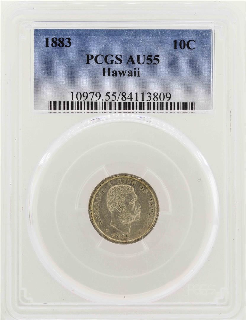 One 1883 Kingdom of Hawaii Dime Coin PCGS AU55. PCGS Graded.
