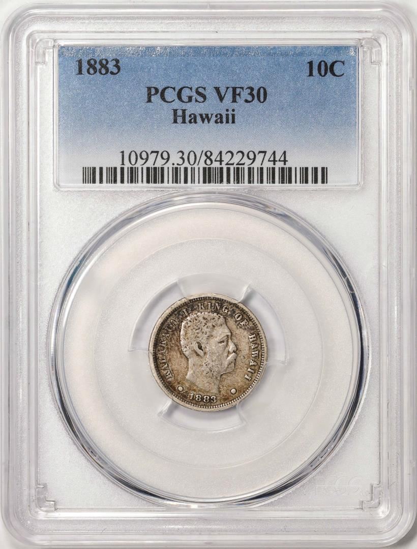 One 1883 Kingdom of Hawaii Dime Coin PCGS VF30. PCGS Graded.