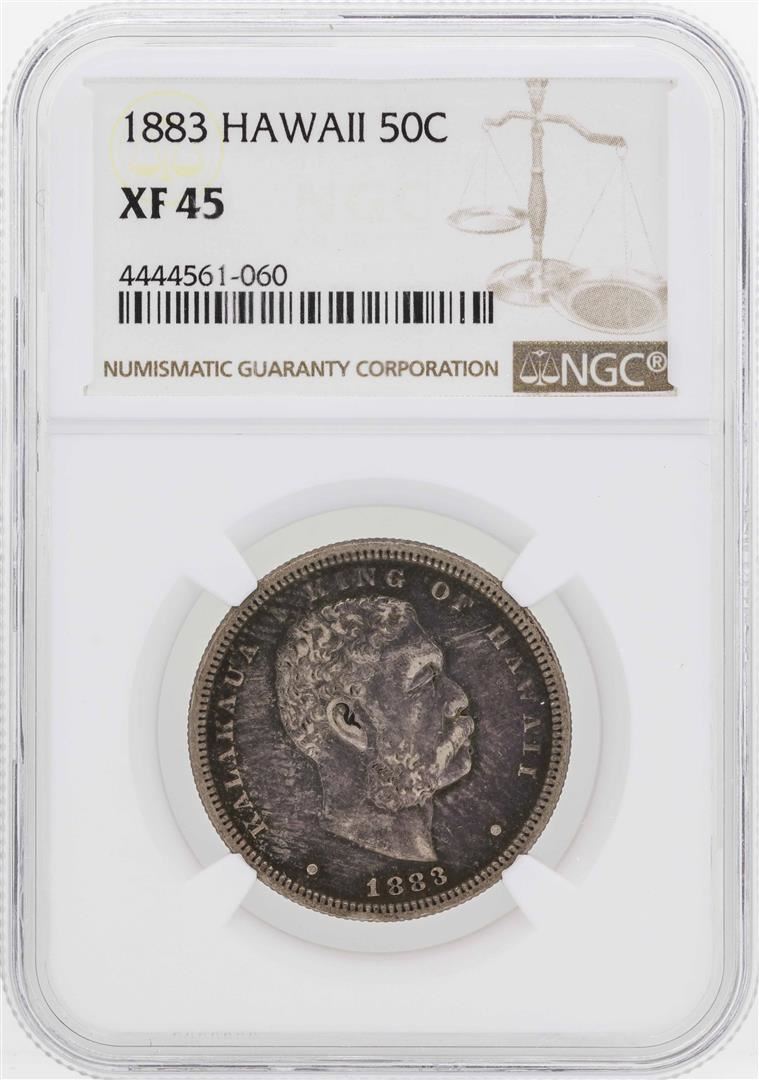 One 1883 Kingdom of Hawaii Half Dollar Coin NGC XF45. NGC Certified.