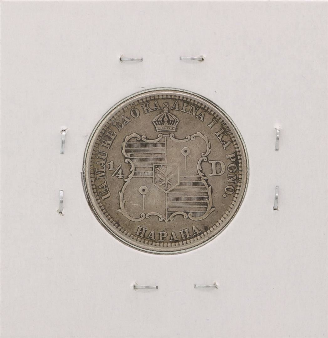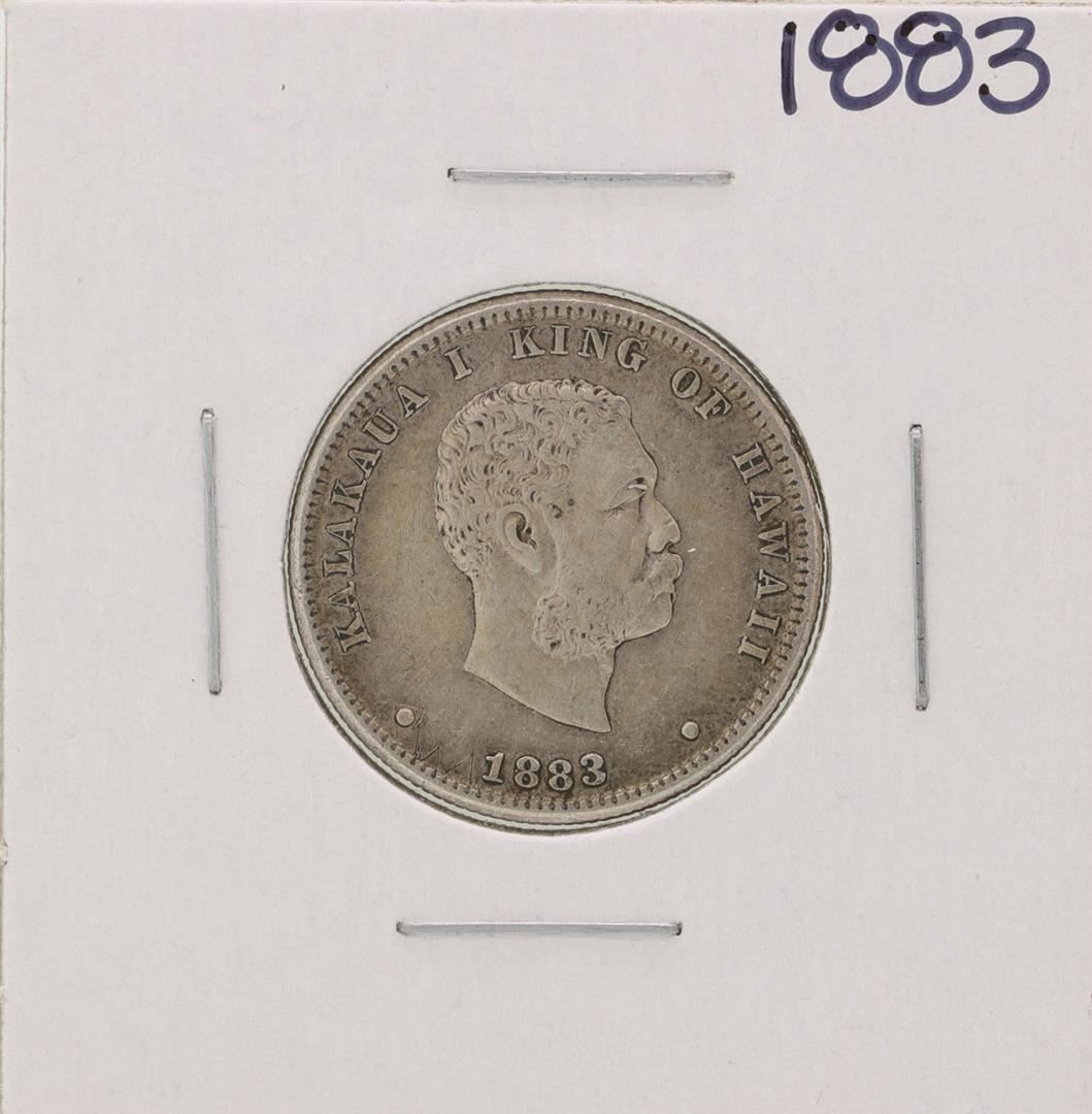 One 1883 Kingdom of Hawaii Quarter Dollar Coin.
