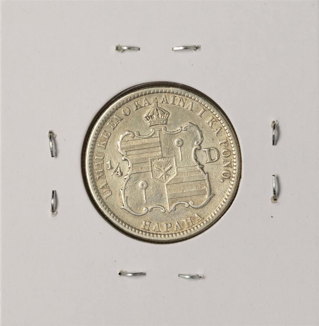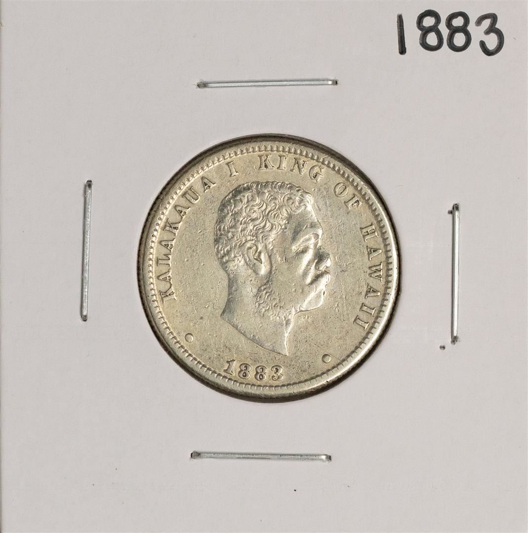 One 1883 Kingdom of Hawaii Quarter Dollar Coin.