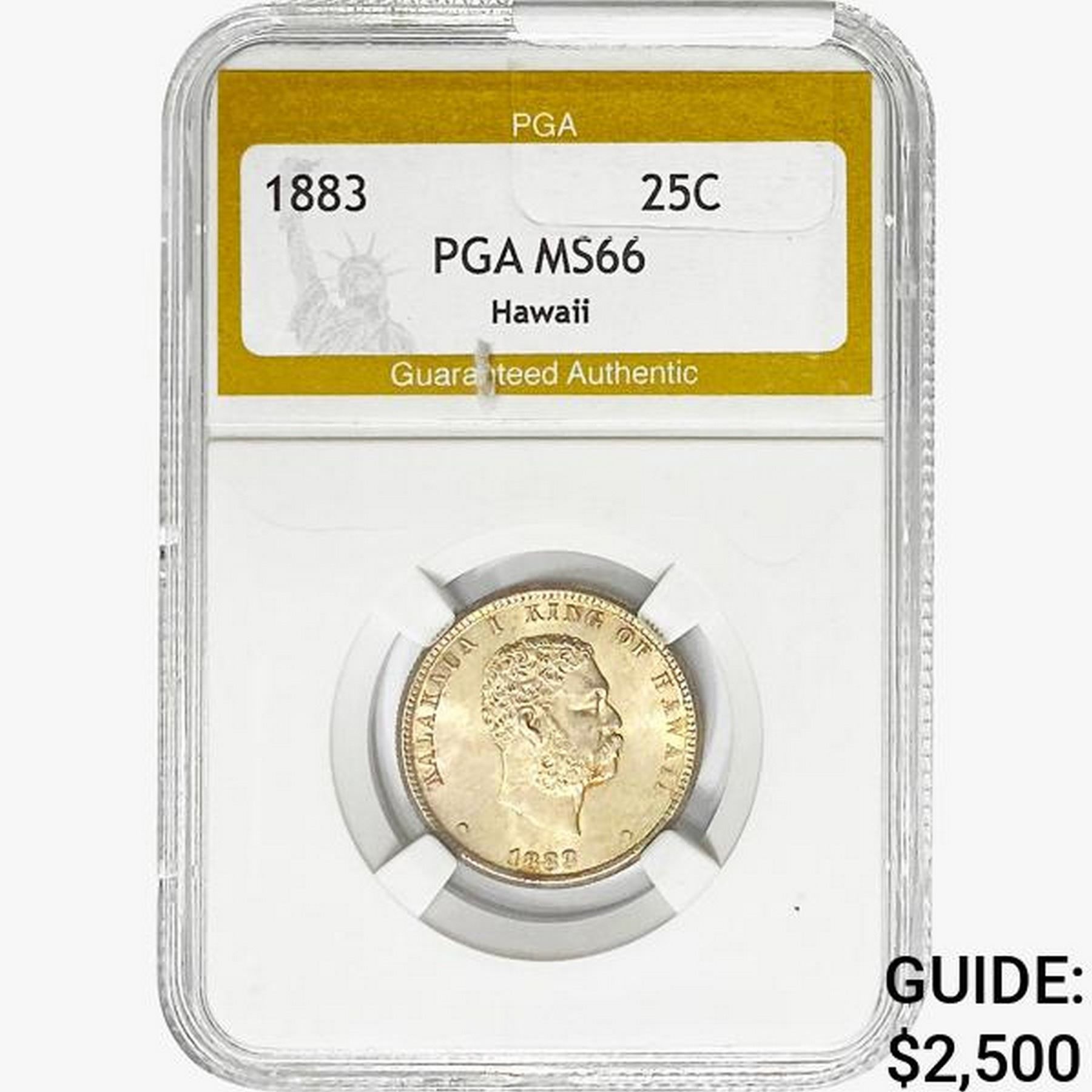 1883 Kingdom of Hawaii Quarter PGA MS66