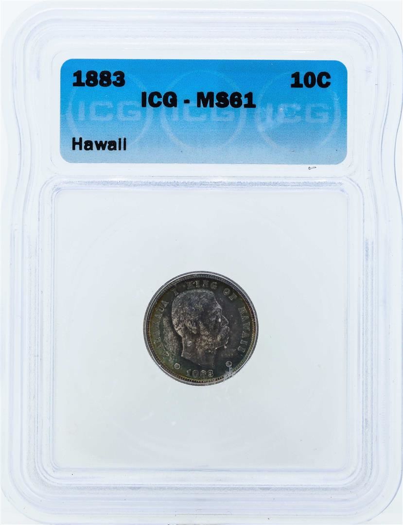 One 1883 Kingdom of Hawaii Silver Dime Coin ICG MS61. ICG Certified.