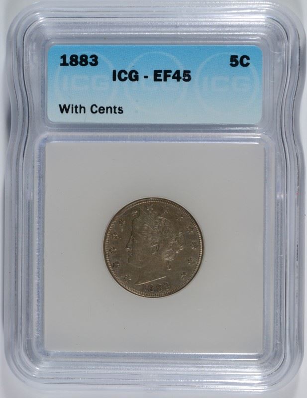 1883 LIBERTY NICKEL, WITH CENTS, ICG EF-45