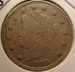 1883 LIBERTY / V NICKEL NO CENTS CH-VF