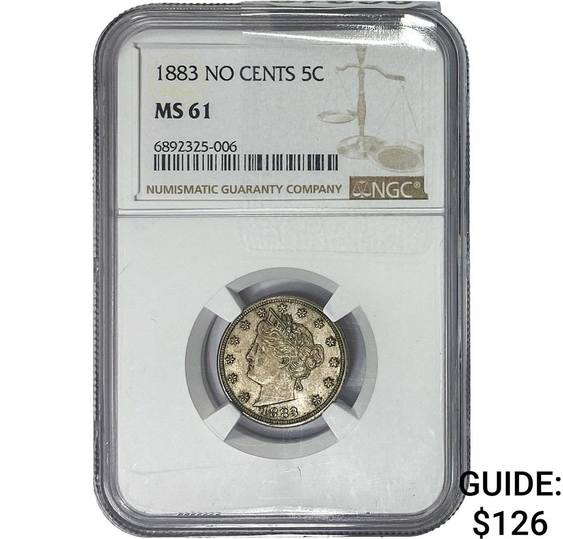 1883 Liberty Victory Nickel NGC MS61 No Cents