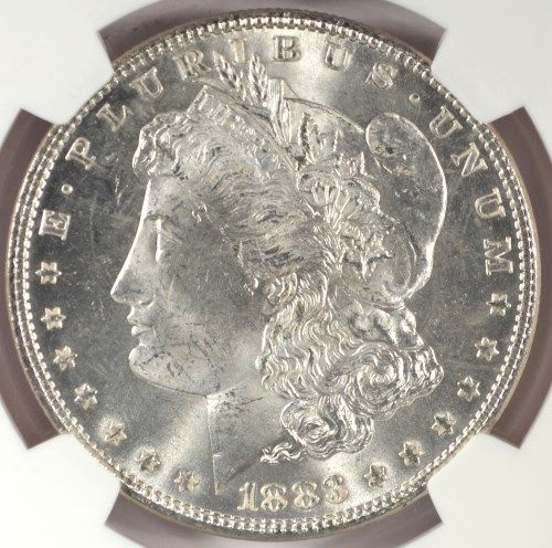 NGC AWARDS THE STAR FOR EXCEPTIONAL EYE APPEAL. THIS ONE IS REVERSE MOUNTED TO SEE THE HIGHLY REFLECTIVE FIELDS THERE. REVERSE LOOKS DMPL. ESTIMATE $350 - $400.