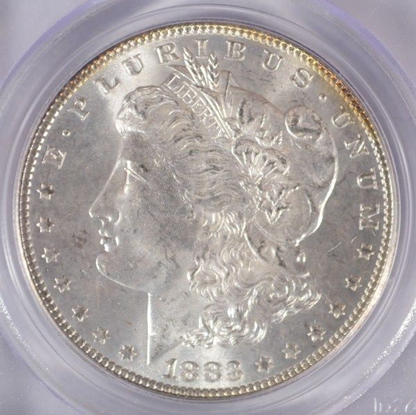 A NICE LUSTROUS DOLLAR WITH TINGES OF COLOR ON THE RIM AT ONE TO TWO O'CLOCK EST. $110.00 TO $120.00