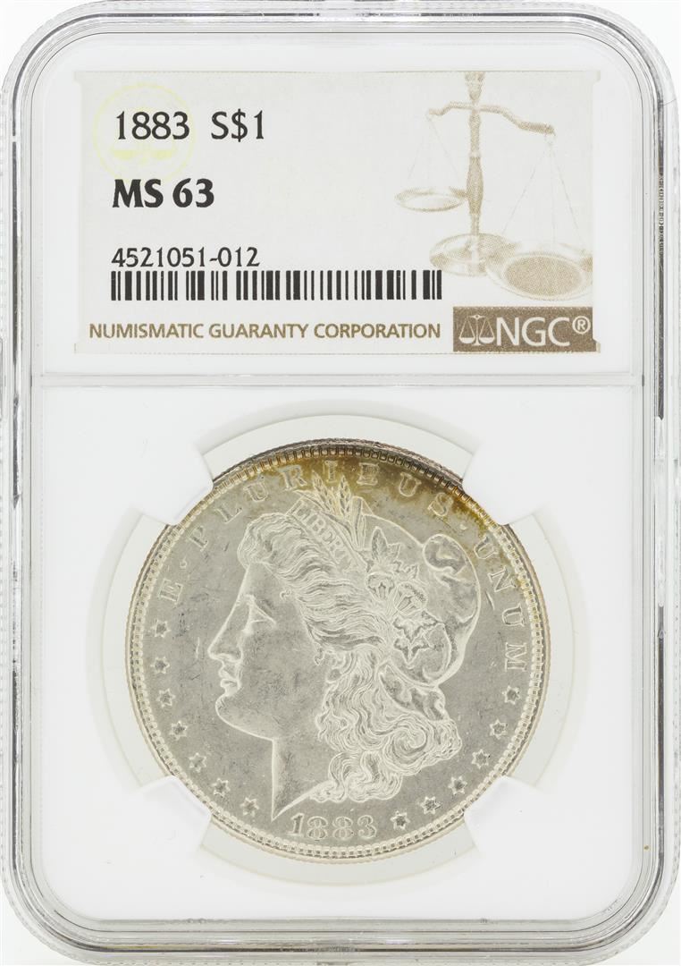 One 1883 MS63 NGC Morgan Silver Dollar NGC Certified.