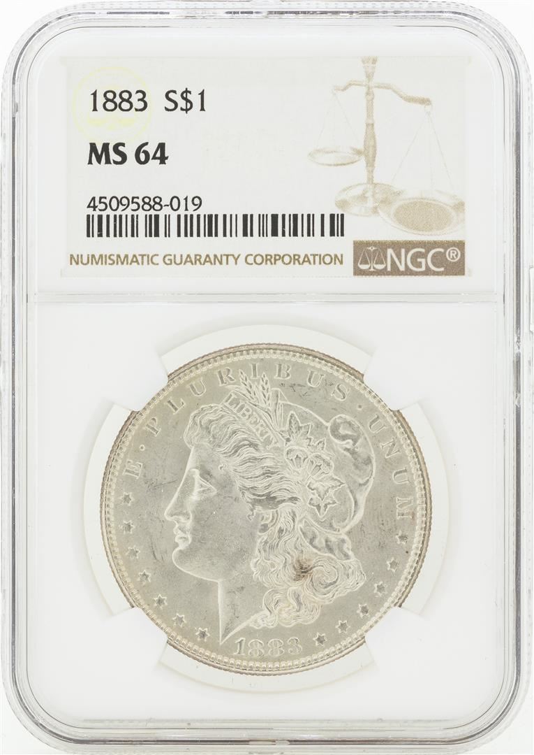 One 1883 MS64 NGC Morgan Silver Dollar NGC Certified.