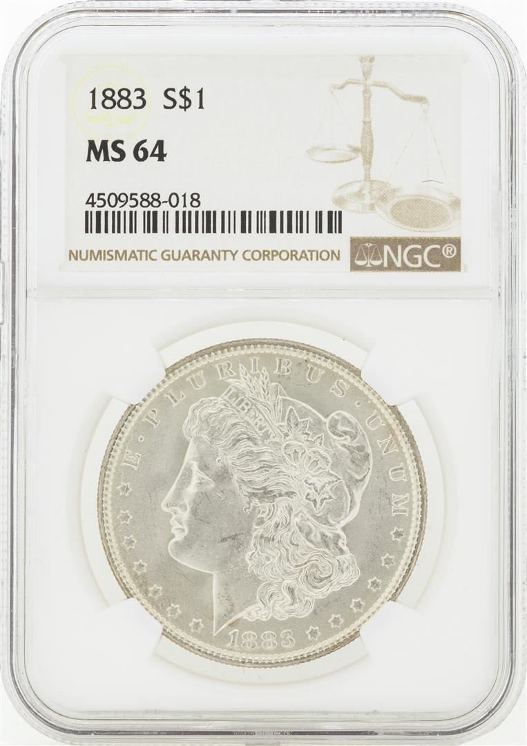 One 1883 MS64 NGC Morgan Silver Dollar NGC Certified.
